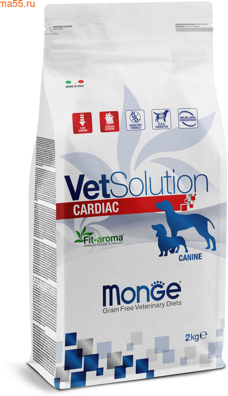 Ветеринарная диета Monge VetSolution Cardiac разработана для собак с целью поддержки функций сердца через питание.