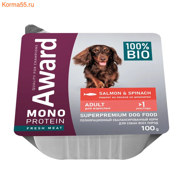 Влажный корм AWARD Monoprotein (из лосося со шпинатом) для собак