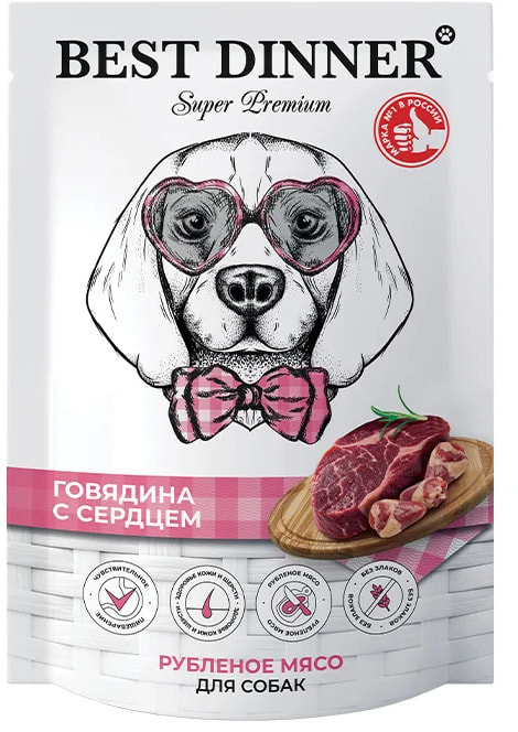 Влажный корм Best Dinner Говядина с сердцем для собак 340гр