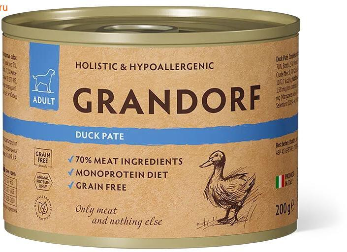 Влажный корм Grandorf из утки для собак 200гр