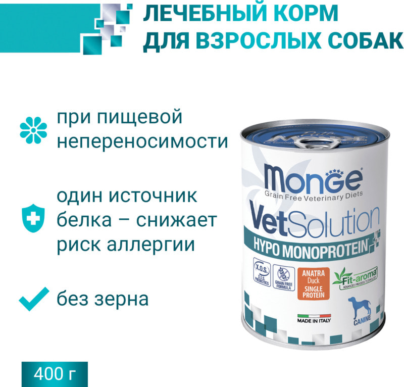 Влажный корм Monge VetSolution Dog Hypo Monoprotein DUCK 400гр