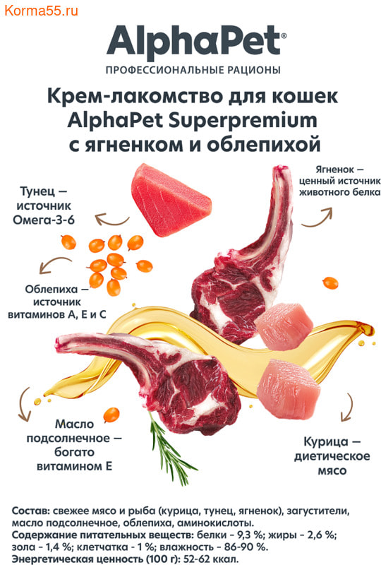 Отзывы - Крем-лакомство для кошек AlphaPet Superpremium с ягненком и облепихойОставить отзыв