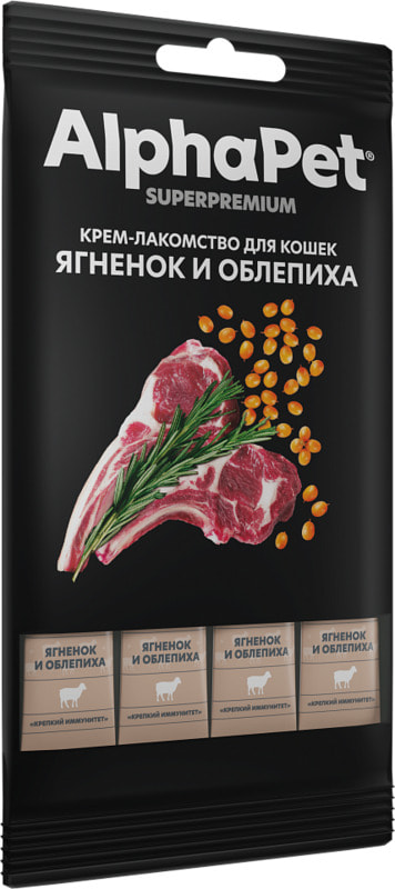 Крем-лакомство для кошек AlphaPet Superpremium с ягненком и облепихой