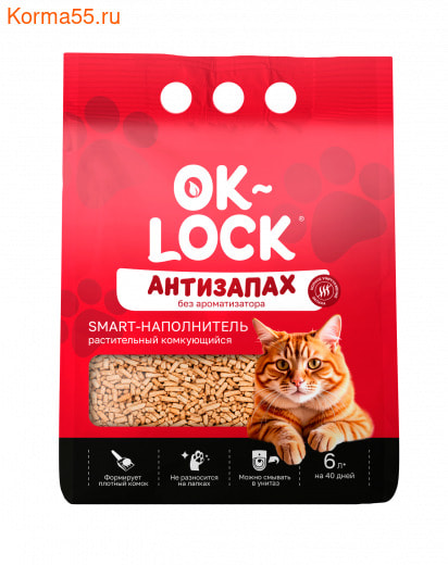 Эко наполнитель для кошачьего туалета Ok-Lock позволит избавить квартиру на долгое время от запаха аммиака, который провоцируют бактерии, содержащиеся в кошачьей моче. Прессованные гранулы Ok-Lock разработаны с учетом особенностей строения лапки кошки и благодаря этому намного реже выносятся из лотка, чем силикагелевые шарики, древесные пеллеты и опилки, мелкие глиняные и бентонитовые камушки.