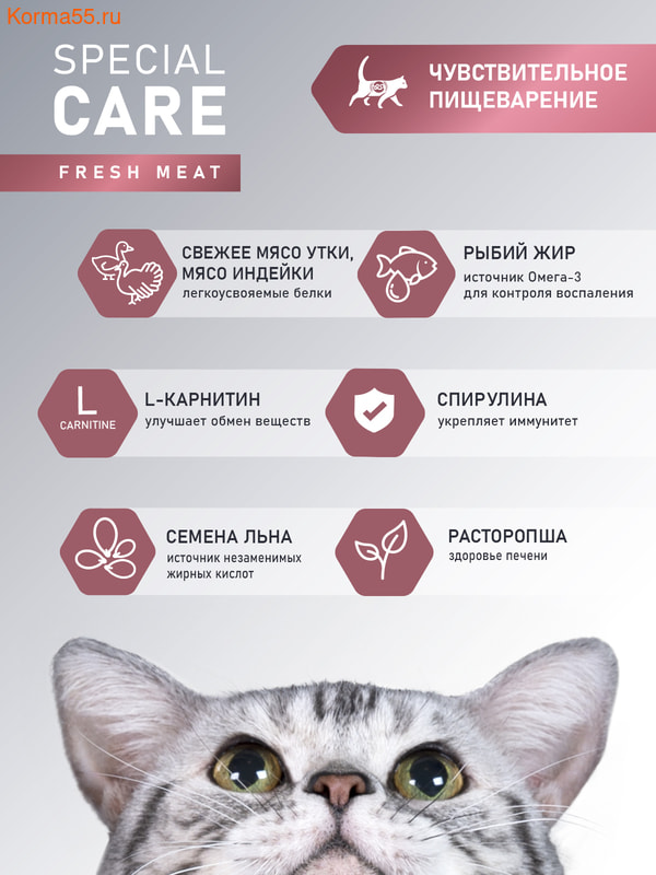 ДОБАВКИ, НА 1 КГ: таурин 0,3%, L-карнитин 300 мг, омега-3 0,32%, омега-6 2,4%.