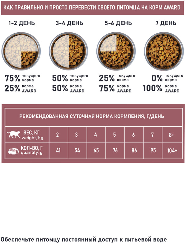 Корм Award - тщательно сбалансированная рецептура из 100% натуральных ингредиентов, созданная по инновационной формуле, обеспечивающей комплексную нутрицевтическую поддержку организма питомца.