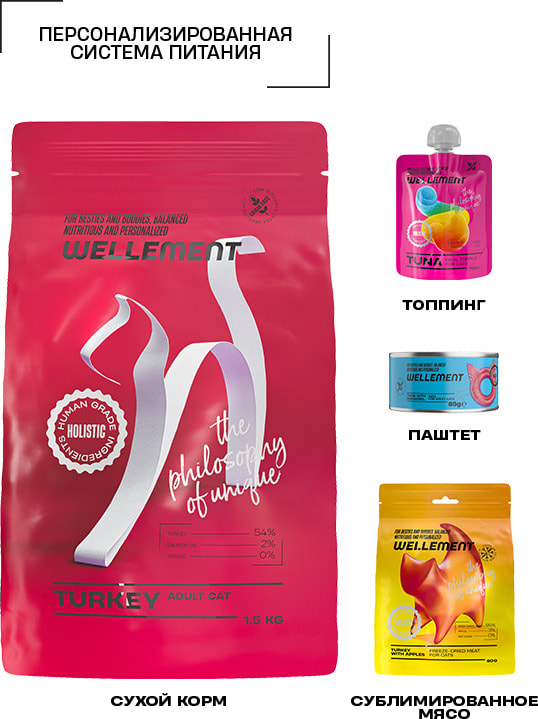 Как и в природе дикие кошки не питаются одними только мышками, так и в домашних условиях иногда бывает очень сложно обойтись только одним кормом. Поэтому Wellement представляет собой инструмент, с которым вы легко подстроите рацион питомца под его нужды.