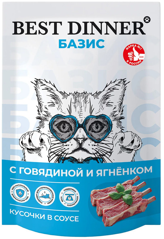 Влажный корм Best Dinner Базис С Говядиной и Ягненком Кусочки в соусе