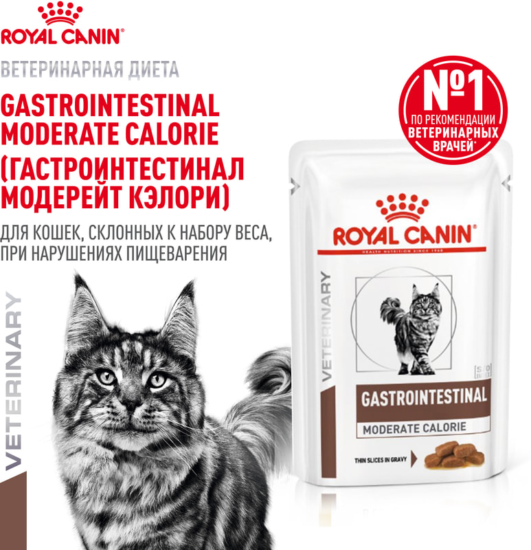 Royal Canin GASTROINTESTINAL MODERATE CALORIE (ГАСТРОИНТЕСТИНАЛ МОДЕРЕЙТ КЭЛОРИ) Корм влажный для кошек, склонных к набору веса, при расстройствах пищеварения
