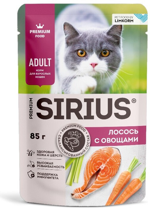 Влажный корм Sirius лосось с овощами для кошек